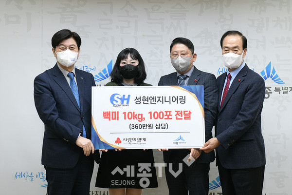 이날 토목설계·컨설팅업체인 ㈜성현엔지니어링(대표이사 편재구)은 360만 원 상당의 백미(10㎏) 100포를 기탁했다.
