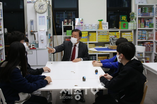 송명석 세종시 교육감 예비후보는 지난 3월 18일에 세종시 최초의 보드게임방인 욜로게임즈 마을기업을 방문해서 중학생 친구들과 의미 있는 만남의 시간을 가졌다.