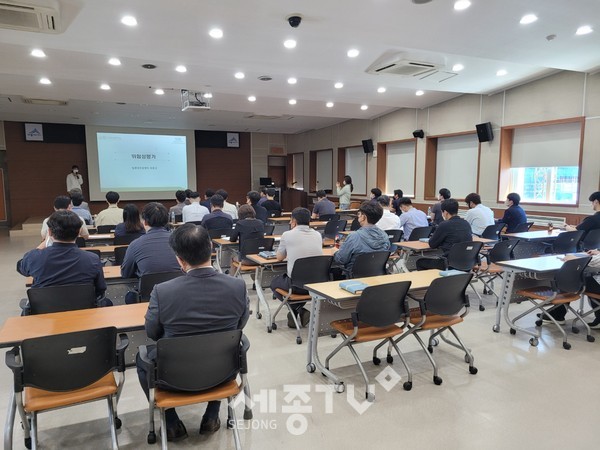 세종특별자치시시설관리공단(이사장 계용준)은 5월 27일 공단 3층 대강당에서 관리감독자 등 안전보건 업무 전담자 41명을 대상으로 위험성평가 전문교육을 실시했다.