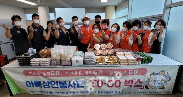 투-고박스 지원사업은 아름동지역사회보장협의체가 아름상인봉사단에게 먹거리를 후원받아 취약계층에게 전달하는 사업이다.