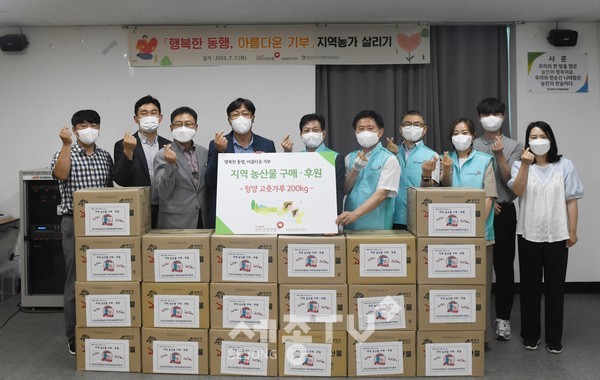 국민건강보험공단 대전세종충청지역본부(본부장 최옥용)는 7월 7일(목), 지역 농가 활성화를 위해 청양군지역활성화재단(충남 청양군)에서 농산품을 구매하고 후원하는 행사를 가졌다.