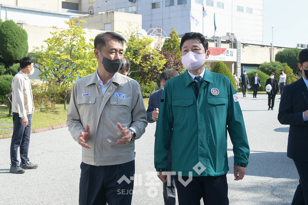 이준배 세종특별자치시 경제부시장이 12일 ‘2022년 안전대전환 집중안전점검’이 진행 중인 남양유업 세종공장을 찾아 민간전문가, 안전단체 등과 현장점검을 실시했다.
