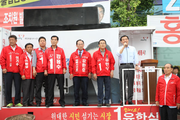 유한식 후보는 "세종시가 무산될 위기에서 촛불한번 들지 않고 시민들 손 한번 잡아주지 않은 사람에게 세종시를 맡길 수 없다"며 "세종시는 시민들과 제가 삭발과 단식, 피와 땀으로 지켜냈다. 끝까지 발전을 이어갈 수 있도록 해달라"고 역설했다.