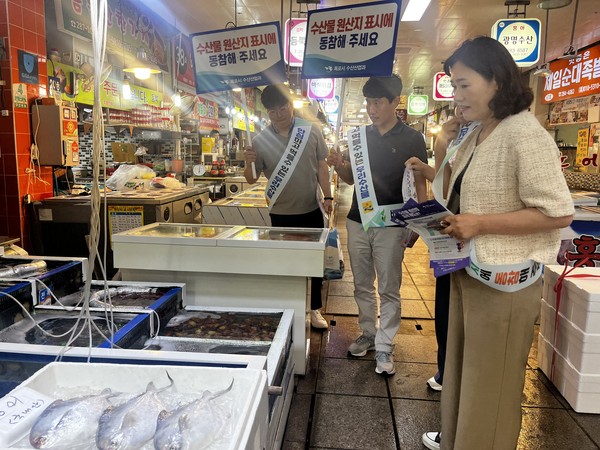또 7월부터 원산지 의무표시 품목이 기존 15개에서 20개로 확대·시행됨에 따라 새로 추가되는 5개 품목인 가리비, 방어, 우렁쉥이, 부세, 전복의 원산지 표시 동참도 적극 홍보했다.