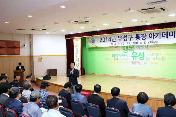 대전시 유성구는 11일 구청 대강당에서 진잠동 등 5개 동 통장 200여명이 참석한 가운데 '2014 통장 아카데미'를 개최했다고 밝혔다.
