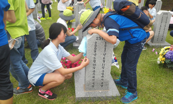 두 학교의 학생들은 현충탑 앞에서 함께 짝을 이뤄 헌화를 하고 묵념해 나라사랑을 실천하신 분들의 숭고한 넋을 기리고, 나라사랑 관련 영화 시청과 선열들이 안식해 계시는 묘지에 가서 비석을 닦는 활동을 했다.