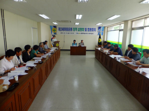 세종특별자치시새마을회(회장 직무대행 황인산)는 13일 오전 세종시새마을회관 회의실에서 읍면동회장과 임원 35명이 참석한 가운데 제2새마을운동 추진 정책 설명회를 개최했다고 밝혔다.