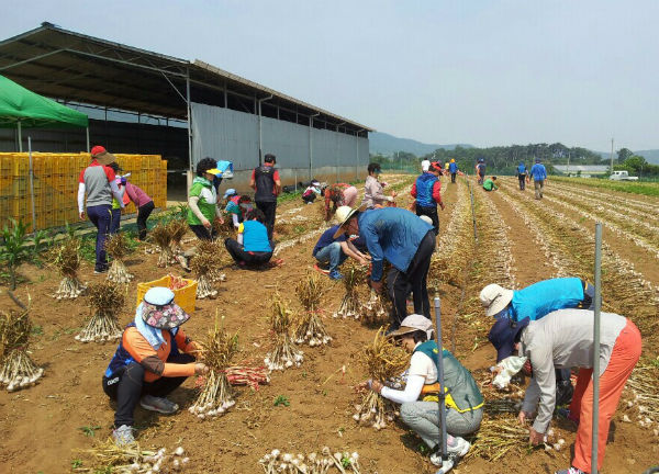 행사를 주관한 유영숙 회장은 "농촌 일손돕기는 힘들고 고단하지만 농촌지역 마늘수확 일손도 돕고 농산물도 구매해 농민들에게 도움을 줄 수 있어 행복하다"고 말했다.