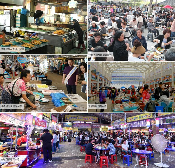전라남도는 남도의 특색을 진하게 느낄 수 있는 관광지로 강진 병영시장, 고흥 전통시장, 나주 영산포 풍물시장, 순천 아랫장, 함평천지 전통시장을 6월 추천관광지로 선정했다.