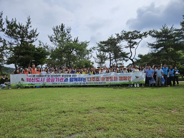 전라남도 나주시(시장 윤병태)가 최근 혁신도시 이전 공공기관들과 함께 나주호 환경정화 캠페인을 펼쳤다고 5일 밝혔다.