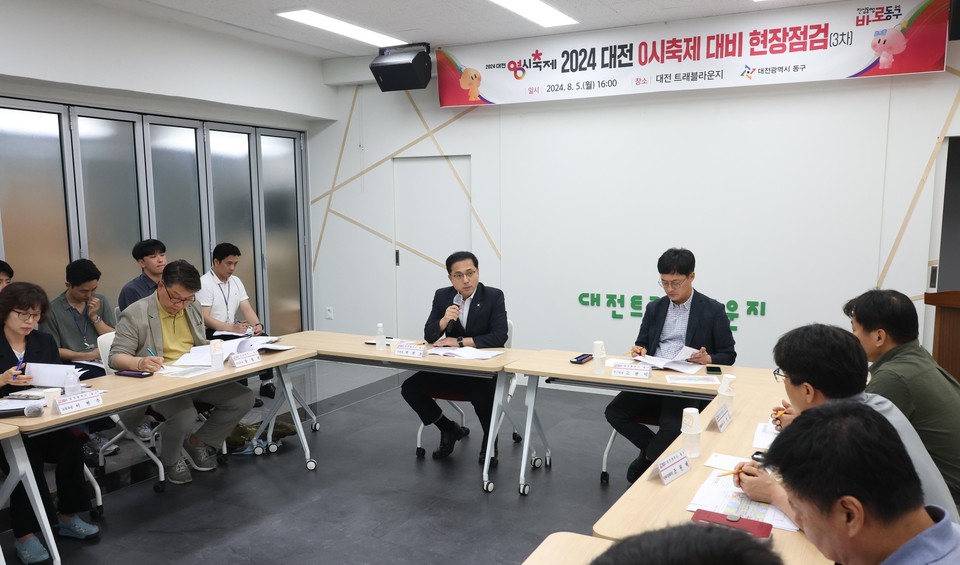 대전 동구(구청장 박희조)는 코앞까지 다가온 '2024 대전 0시 축제' 개최를 앞두고 지난 5일 최종 현장 점검을 가졌다.