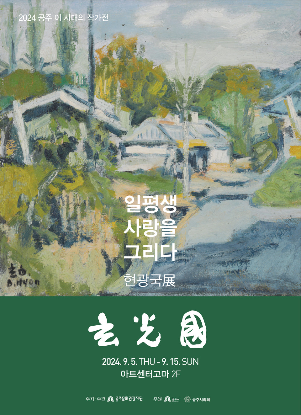(재)공주문화관광재단(대표이사 김지광)이 오는 9월 5일부터 9월 15일까지 아트센터고마에서 「2024 공주 이 시대의 작가전-故현광국 일평생 사랑을 그리다 展」을 개최한다. (사진제공)