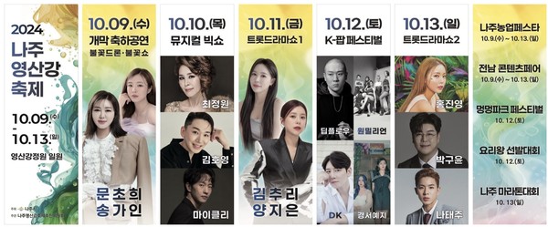 전라남도 나주시가 국가정원 지정을 목표로 조성 중인 영산강 정원에서 처음으로 개최하는 2024 나주영산강축제를 9일부터 13일까지 5일간 선보인다.