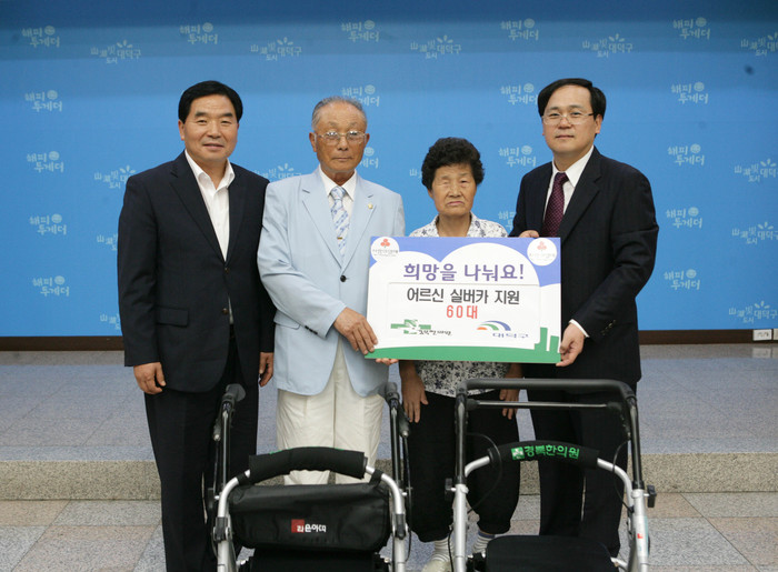 박수범 구청장은 격려사에서 “실버카 전달이 나눔과 배려를 실천하는 운동으로 확산되는 계기가 되기를 기대한다”며, “대덕구를 모두가 더불어 잘 사는 복지공동체로 만들어 가겠다”고 밝혔다.