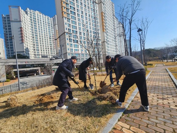 고운동(동장 박미애)은 지난해 실개천 약 3㎞에 식재했던 도화꽃나무 225주에 더해 올해 77주를 추가로 심었다고 6일 밝혔다.