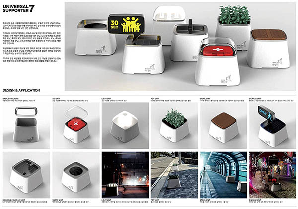 대상작 ‘UNIVERSAL SUPPORTER 7(홍욱)’은 기본 구조를 다목적으로 활용할 수 있는 공공시설물 디자인을 제안해 높은 평가를 받았다. 수상자에게는 대상 500만 원, 금상 300만 원 등 총 1,700만 원의 상금이 수여된다.