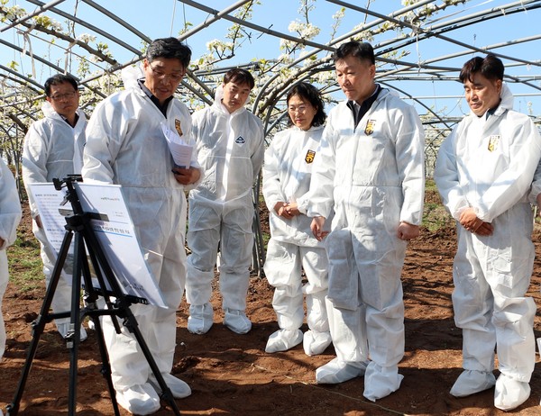 간담회 이후엔 배 농가 현장을 방문해 배꽃 개화 상태와 수분 작업 현황을 살폈다.