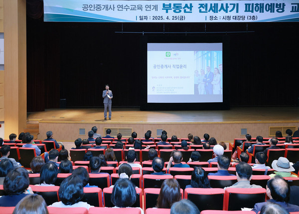 대전시는 25일 시청 대강당에서 지역 공인중개사 400여 명을 대상으로‘공인중개사 연수교육과 연계한 부동산 전세사기 피해예방 교육’을 실시했다.