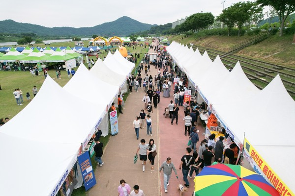 행사장과 인접한 ‘들섬’과 둔치체육공원 일원 14만㎡ 규모에 조성된 꽃밭은 붉은 꽃양귀비와 분홍, 흰색, 주황빛의 다양한 양귀비꽃들이 어우러져 자연 속 포토존이자 산책 명소로 각광받았다.