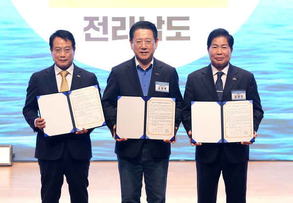 대한민국 해상풍력의 중심지, 전라남도는 18일 여수 엑스포홀에서 ‘해상풍력 산업박람회’가 열려 전남 동부권 13GW 해상풍력 비전을 선포하고, 에너지 기본소득·기자재 공급망 구축 업무협약을 했다.
