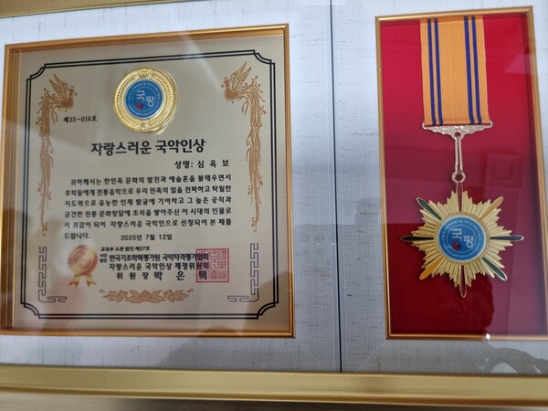 대전.세종충청지역에서 활동중인.시니어 한국무용가 심옥보 씨가 ‘자랑스러운 국악인상’을 수상하는 영예를 안았다.