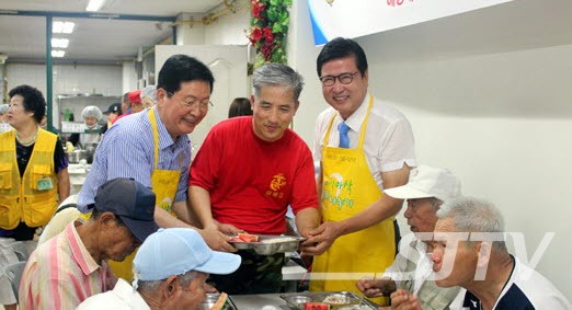 양희권 국제라이온스협회 365복합지구 의장의 후원으로 진행된 이날 배식봉사에는 장종태 서구청장, 서구노인복지관 관장인 장곡스님, 해병대 서구전우회 회원들이 참여했다.