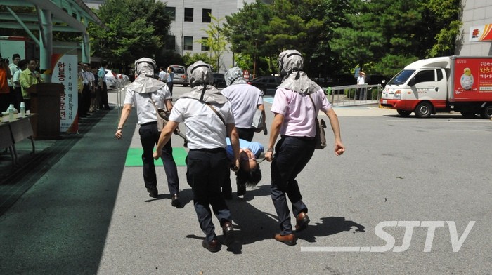 주요 훈련내용은 건물 내 화재가 발생하였을 경우를 가정한 긴급대피, 화재진화, 응급구조 등을 훈련하였으며, 소방차가 진입하기 직전까지 직원들의 개인별 임무 등 초동대처에 대해 세부적으로 훈련goT다.