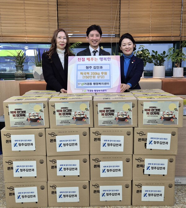 청주 김안과 관계자는 “작은 정성이지만 가경동 이웃들이 새해를 맞아 떡국떡으로 건강과 희망을 나누길 바란다”며 앞으로도 지역사회와 함께하는 나눔활동을 꾸준히 이어 가겠다고 밝혔다.