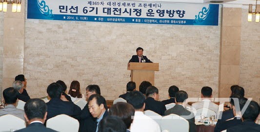 권 시장은 이날 대전상공회의소가 주관하고 대전시와 하나은행충청사업본부 후원으로 유성호텔에서 열린 제169차 대전경제포럼 조찬세미나에서 민선 6기 대전시정 운영방향을 설명하고 대전 대표기업 키우기, 대덕특구 상생협력 방안 정립, 국방산업 육성 등 3대 추진 전략을 제시하며 이같이 밝혔다.