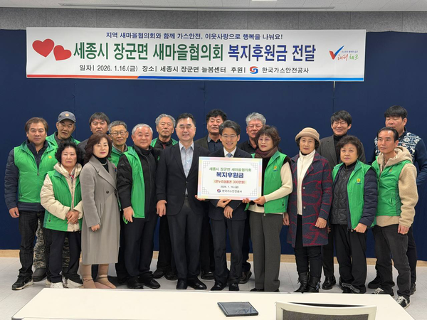 【SJB세종TV=황대혁 기자】 한국가스안전공사는 16일 세종특별자치시 장군면 새마을협의회에 복지후원금을 전달했다.