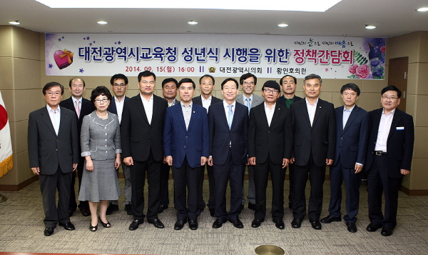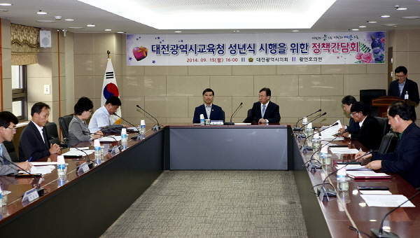 이번 정책간담회는 내년부터 시행될 예정인 「대전광역시교육청 성년식 시행조례」의 방향을 모색하기 위해 현재 성년식 프로그램을 실시중인 학교의 사례를 검토하고 관계부서의 의견을 수렴하고자 추진됐다.