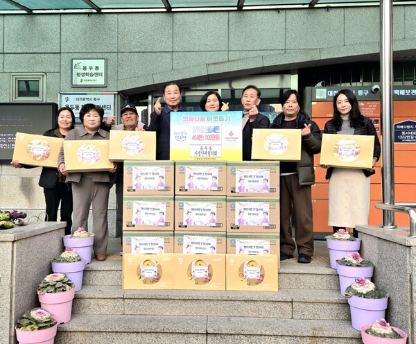 【SJB세종TV=박해연 기자】 대전 중구 용두동(동장 윤양숙)은 지난 11일 다가오는 설 명절을 맞아 자생단체협의회(회장 이상석) 주관으로 관내 취약계층이 따뜻하고 넉넉한 명절을 보낼 수 있도록 ‘사랑의 선물세트’를 기탁받았다고 밝혔다.
