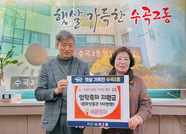 수곡2동지역사회보장협의체, 초중고 신입생 문화상품권 150만원 전달