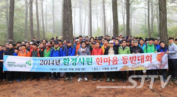 대전도시공사는 25일 계룡산 수통골에서 박남일 사장과 환경사원 200여명이 참석한 가운데 2014년 환경사원 한마음등반대회를 겸한 체력단련행사를 개최했다. 저작권자 © SJB세종TV 무단전재 및 재배포 금지 세종TV 다른기사 보기 페이스북 트위터 카카오톡 네이버블로그 구글+ URL복사 기사공유하기