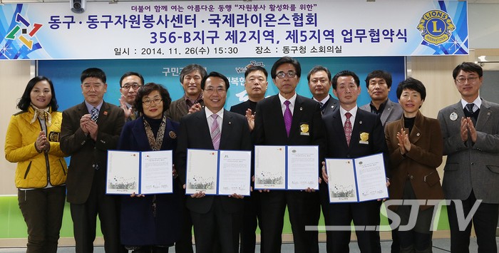 대전 동구(구청장 한현택)는 26일 구청 소회의실에서 국제라이온스협회 356-B지구 2지역 및 5지역과 (사)대전 동구자원봉사센터와 함께 동구 관내 취약계층을 돕는 다양한 봉사프로그램 제공을 위한 협약식을 가졌다.