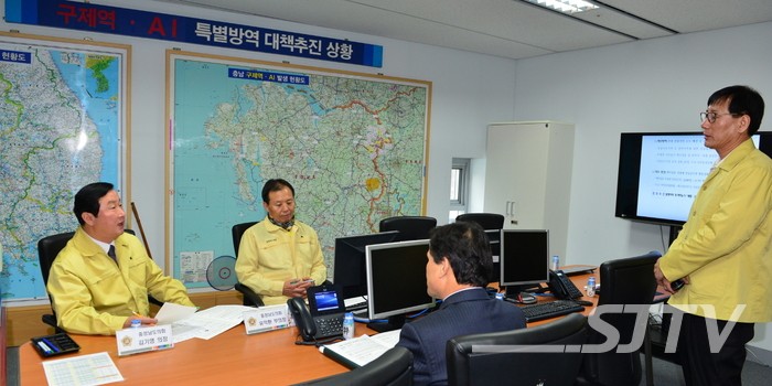 김기영 충남도의회 의장을 비롯한 유익환 부의장, 김홍열 농업경제환경위원장, 홍성현 교육위원장, 각 상임위원회 의원 등은 9일 천안 삼거리공원에 설치한 구제역 방역초소를 방문하고 구제역 확산 차단을 위해 근무하는 직원들을 격려했다.