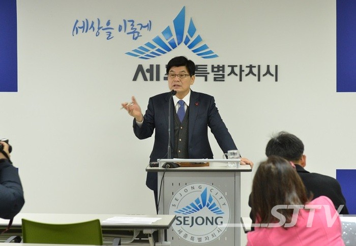 이춘희 세종시장이 28일 시청 기자실에서 정례 브리핑을 열고 서창지구 행복주택 건설과 100대 과제 등 공약추진 상황에 대해 발표했다.