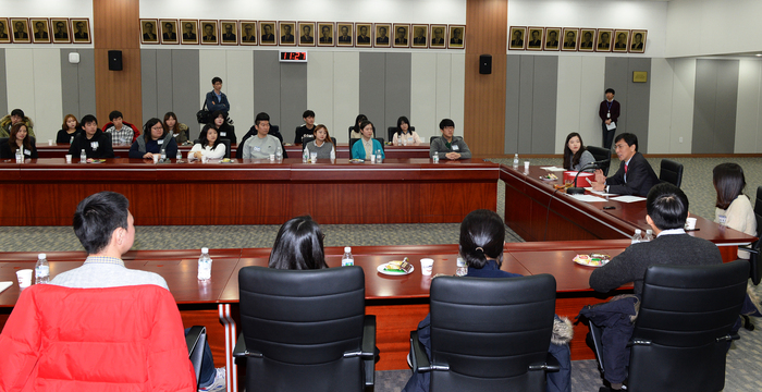 안희정 충남도지사는 4일 도청 대회의실에서 도 본청 실·과와 직속기관, 사업소 등에서 근무 중인 아르바이트 대학생과 대화의 시간을 가졌다.