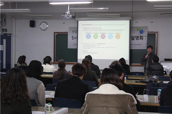 상명대학교 천안캠퍼스 디자인대학 ‘창조경제를 선도하는 융합형 창의디자인 인재양성 특성화 사업단’(강성해 단장)은 5일 특성화사업 S.L.D(SMART Living Design) 연계전공 프로그램의 일환으로 텍스타일디자인학과와 산업디자인학과 재학생들을 대상으로 연계전공 설명회를 개최했다.