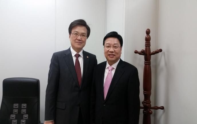 권선택(오른쪽) 대전시장이 10일 오후 미래부를 방문해 최양희 미래창조과학부장관을 면담했다.