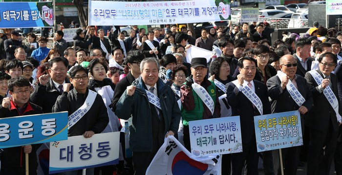 대전 동구(구청장 한현택)가 광복 70주년과 제96주년 3·1절을 맞아 ‘나라사랑 태극기 달기 운동’을 대대적으로 전개해 눈길을 끌고 있다.