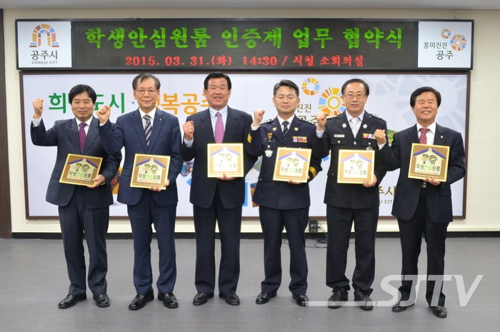 시는 31일 오후 2시 공주경찰서, 공주소방서, 공주대학교, 공주교육대학교, 안전문화운동 추진 공주시협의회 6개 기관․단체가 참여하는 ‘학생안심원룸 인증제 업무협약식’을 가졌다고 밝혔다.