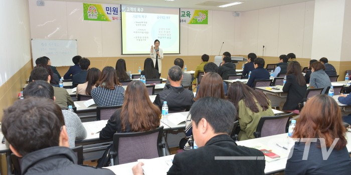 ‘입장을 바꿔보면 친절이 보입니다’라는 주제로 진행된 이번 교육은 불만고객 응대 요령, 서비스 매너, 자기관리를 위한 컨디션 트레이닝, 커뮤니케이션 스킬 등 민원응대에 필요한 필수적인 요소들을 교육했다.