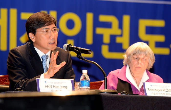 안 지사는 이 자리에서 “인권의 반대편에는 늘 폭력이 있었고, 힘 있는 자들이 폭력과 차별을 통해 가난하고 힘없는 이들의 인권을 유린해온 것은 시대와 국가를 막론하고 인류 역사에서 반복된 불편한 진실”이라며 “이에 대한 확고한 해결책은 민주주의 밖에 없다”고 말했다.