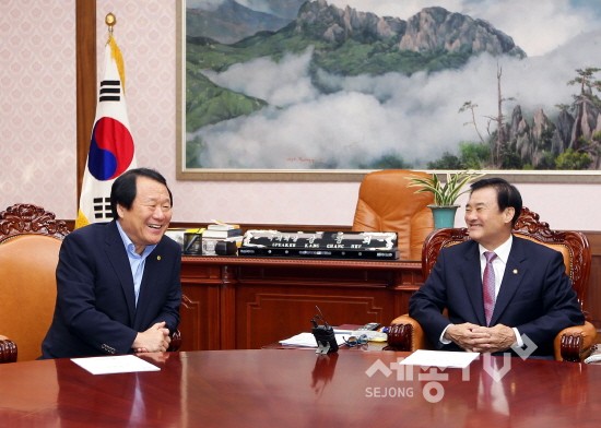 염홍철 대전시장은 22일 오전 국회를 방문해 강창희 국회의장과 환담을 갖고 지역 현안 등을 설명하며 적극 협조해 줄 것을 요청했다.
