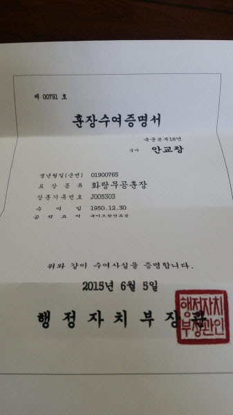 앞뒤가 서로 맞지 않는 일 아닌가 해서다. 육군본부에서는 지난 1985년 무공을 기려 훈장을 수여했건만, 이제와서 아무런 보상도 없거니와 도리어 주었던 위로금마저 박탈해가고자 하는 나라는 도대체 어느 나라인가 하는 회한이 산처럼 밀려온다.