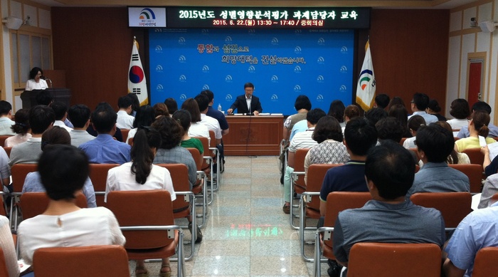 이날 교육은 전북대학교 생태환경조경학과 심준영교수와 수원시 여성문화공간 휴 센터 박재규센터장이 성별영향분석평가의 이해와 성인지예산제도간 연계사례 등에 대해 강의했다.