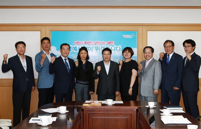 권선택 대전시장은 23일 오후 명예시장실에서 제2대 명예시장들과 정례간담회를 갖고 현장에서 느낀 활동소감과 시정에 반영할 제안사항에 대한 의견을 나눴다.